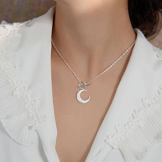 Textured Crescent Moon T-Bar Necklace